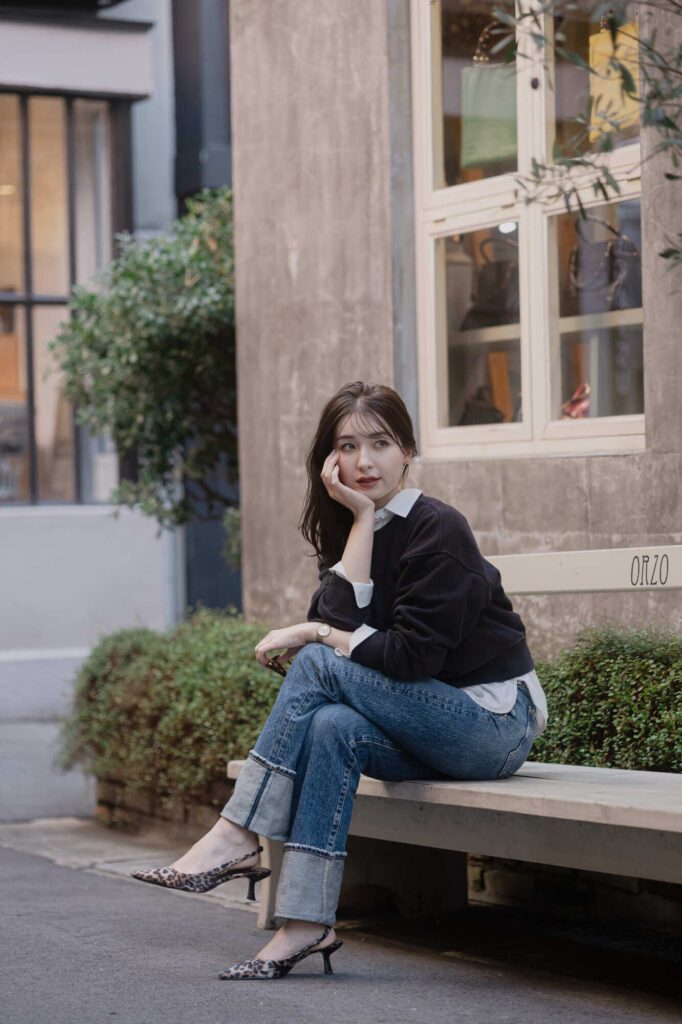 ポージングを強く指示するよりも、会話やその場の流れの中で生まれる一瞬を捉えることを得意としています。